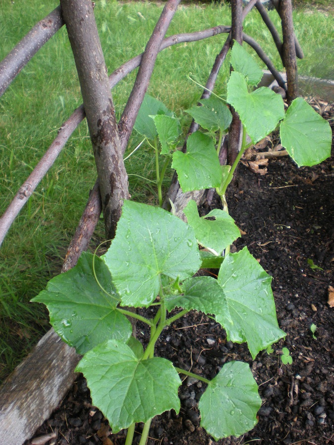 I have pickling cucumbers (shown right), red morning glories, and small asian melons itching to climb.Perhaps another year I will try green beans and snap peas as well.